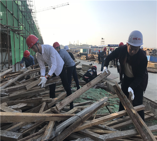 當(dāng)天,二支部全體黨員前往馬壕污水處理廠擴(kuò)容工程現(xiàn)場(chǎng)參觀學(xué)習(xí)。項(xiàng)目負(fù)責(zé)人詳細(xì)的介紹了項(xiàng)目基本情況,并帶領(lǐng)全體黨員在現(xiàn)場(chǎng)開(kāi)展治理?yè)P(yáng)塵、搬運(yùn)模板、構(gòu)件等志愿服務(wù)活動(dòng)。黨員們佩戴黨徽,頭戴安全帽,以一名項(xiàng)目建設(shè)者的身份積極參加馬壕污水處理廠現(xiàn)場(chǎng)建設(shè),以實(shí)際行動(dòng)支持項(xiàng)目建設(shè),助推重點(diǎn)工程進(jìn)度。
